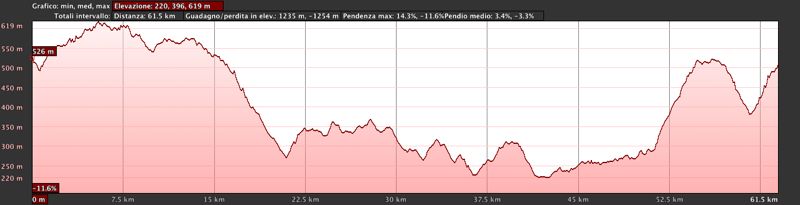 Starting from the center of Radda in Chianti Castellina take direction anddo on for about 10 km on a path slightly wavy. Reached the center of Castellina we take the SS 222 to Siena. The road surrounded by woods and vineyards descends steadily for several kilometers, and after a short climb we reach Quercegrossa and then continue on a undulating tract to Siena. We visit the city center following the signs to the railway station and then to Rome. Madonna arrived in the village take the SS Red 408, an undulating track that takes us 10 km to Pianella. At Ponte a Bozzone we can make a detour on the left to visit the beautiful Pontignano Charterhouse. After Pianella, crossed the river Arbia, we head down the valley along the river for 8 km to the point where the stream flows Massellone nell'Arbia: we leave the main road to turn left onto a hill that climbs up to San Sano, continue at a time after the town of Lecce, the village at the foot of the castle lies above the valley of Monteluco Massellone. The road continues in a steady climb through an area rich in historical and architectural: He loves to spend the first with its famous church nave, the Andes, a small rural village, well preserved, and then, at the bottom of a slope, with Willow St. Just in its Romanesque church from where we continue uphill until you reach Radda in Chianti.